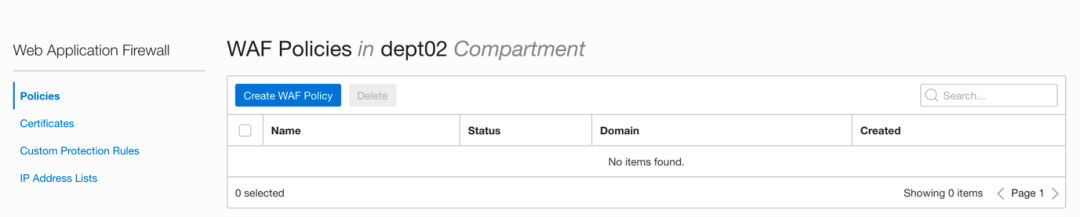 进入Oracle OCI Console -> Security -> Web Application Firewall