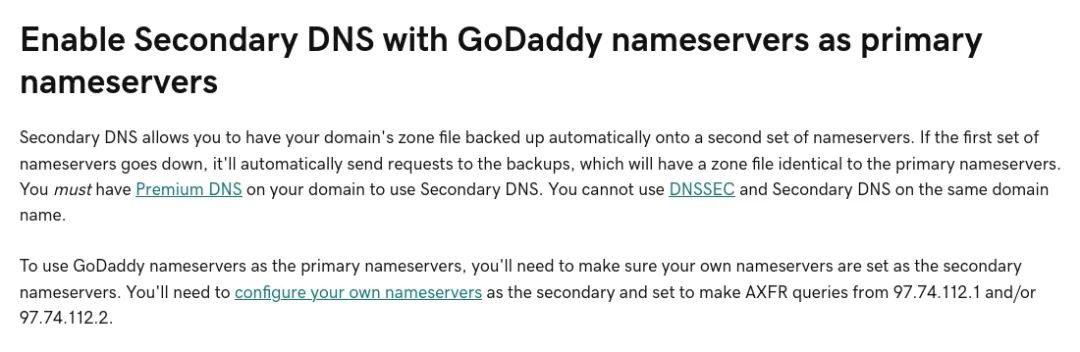 为了解决上述问题,需要在已有的主要域名服务(Primary DNS)的基础上,添加托管于不同服务商的辅助域名服务(Secondary DNS):