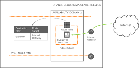 可以通过Internet Gateway连接到OCI,创建Internet Gateway后,必须在VCN的路由表中为Internet Gateway添加路由。详细见文档https://docs.cloud.oracle.com/en-us/iaas/Content/Network/Tasks/managingIGs.htm,架构如下图: