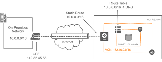 为克服通过Internet连接到OCI的安全问题,可以使用基于Internet的IPSec VPN来建立本地数据中心和OCI的连接。IPSec VPN是采用IPSec协议来实现远程接入的一种VPN技术。IPSec VPN对数据进行加密,使连接更安全,并能抵抗窃听和攻击。但是,它无法解决互联网上常见的性能问题(速度和延迟)。