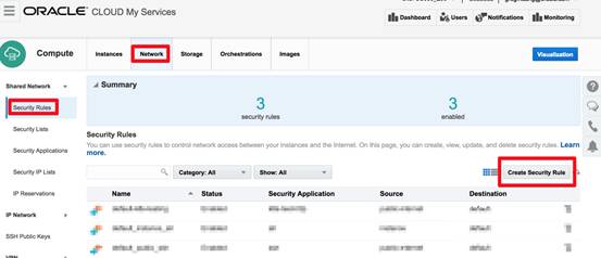 在Compute云编排模版之前,我们需要在Compute云中进行一些与云安全相关的设置,这些安全设置对于保护我们在云中的资源非常重要,无论是测试还是正式环境我都建议大家使用Oracle的最佳实践来进行设置,而不要像在On Promise时代那样简单粗暴的将所有的安全限制全部放开。操作步骤也非常简单,只需点击“Create Security Rules”并进行配置即可。