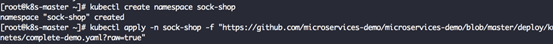 接下来我们将只通过两条条命令在Kubernetes集群上启动一个纯粹的微服务架构下的全功能的电商网站。这个电商网站示例代码的Git地址为:https://github.com/microservices-demo/microservices-demo,大家可以到这个网页上参考具体的信息。在k8s_master节点上运行以下命令: