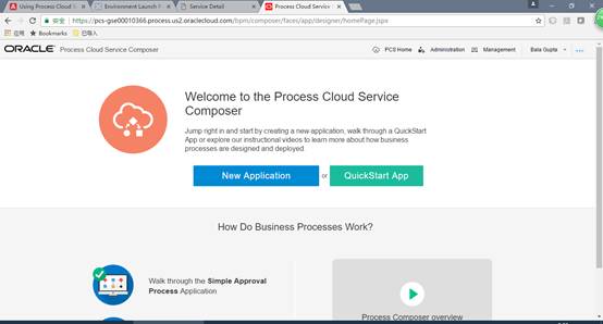 出现流程云服务的主界面,点击PCS旁边的Open Service Console,进入流程服务控制台。