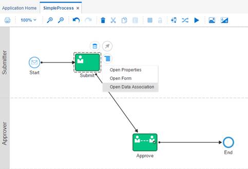流程中运行的数据往往和应用中不同,我们建议将应用数据和流程数据进行区分,将必要的数据放入流程中进行处理,而大量的业务数据需要放在业务的应用中,业务和流程通过API进行交互调用来传送数据。