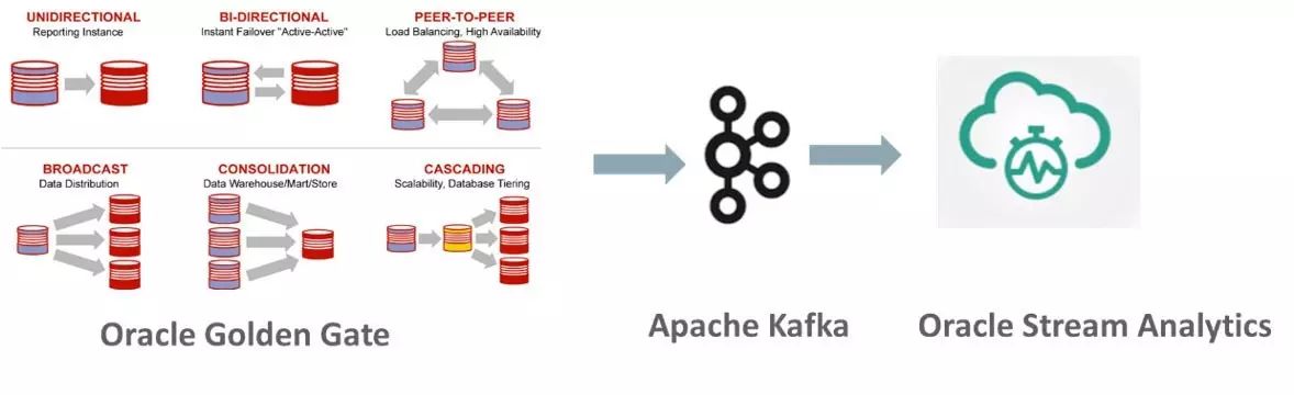 Oracle Stream Analytics支持新的事件流源和目标,例如MQTT,Apache Kafka和Twitter。特别是Kafka在现代大数据架构中变得越来越重要。我们现在可以使用Oracle Golden Gate立即捕获任何数据库表(CDC=更改数据捕获)上的更改,使用GoldenGate for BigData将这些捕获的更改事件发送到Kafka,并从OSA中使用它来对其应用流分析。