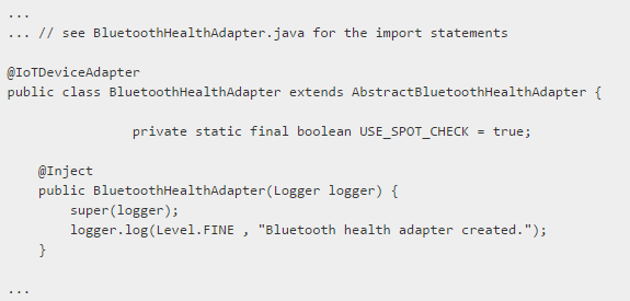 其中@IoTDeviceAdapter标记表示创建了设备适配器,以便Oracle IoT云服务网关的访问。