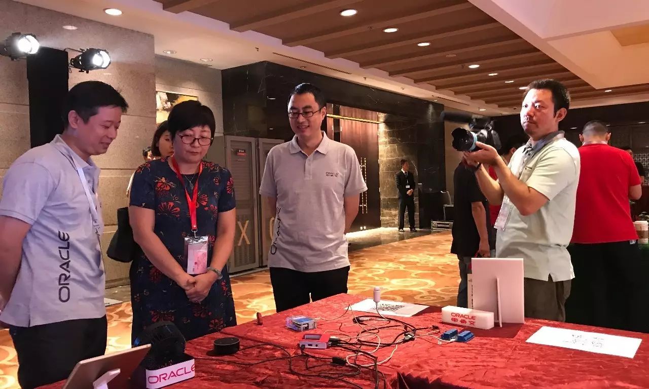 随后,在Oracle售前总监刘震和高级销售经理李宏宇的陪同下参观了IoT展台。