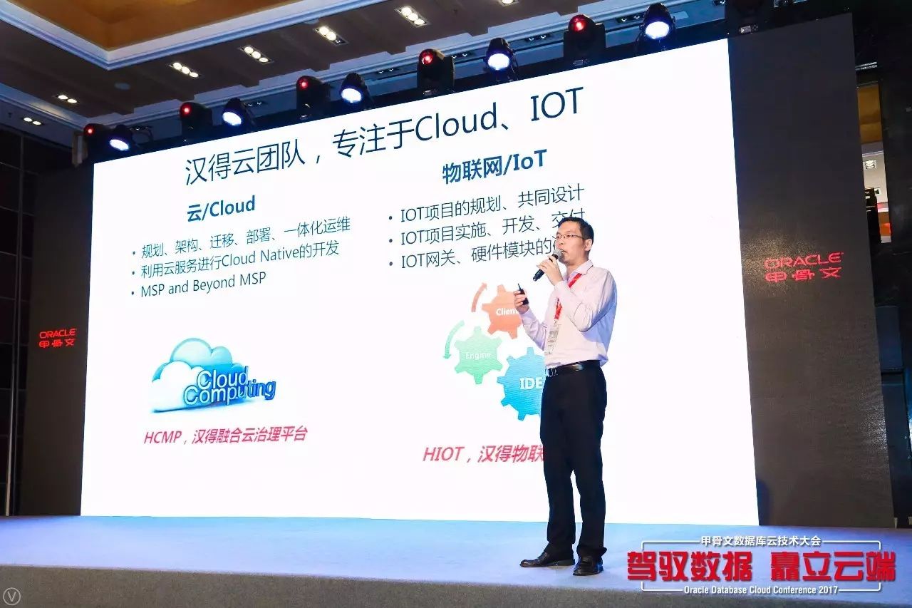 汉得信息云技术中心副总监柳进也分享了汉得基于Oracle云平台搭建的一系列解决方案,助力企业应用轻松上云。