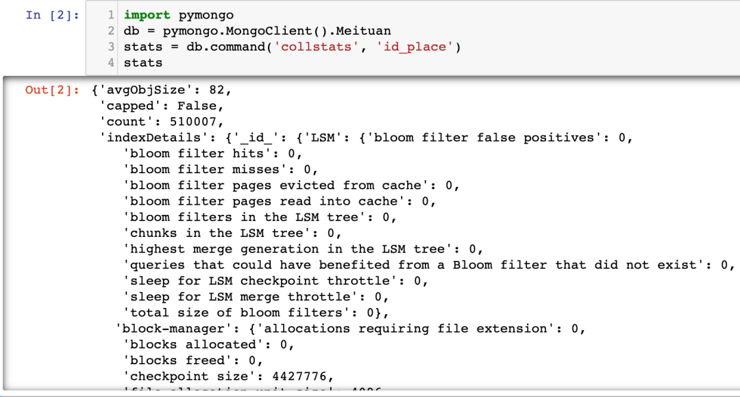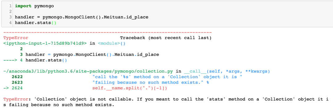 而且,如果如果尝试写一些代码,你会发现在 Pymongo 里面,没有类似.stats()