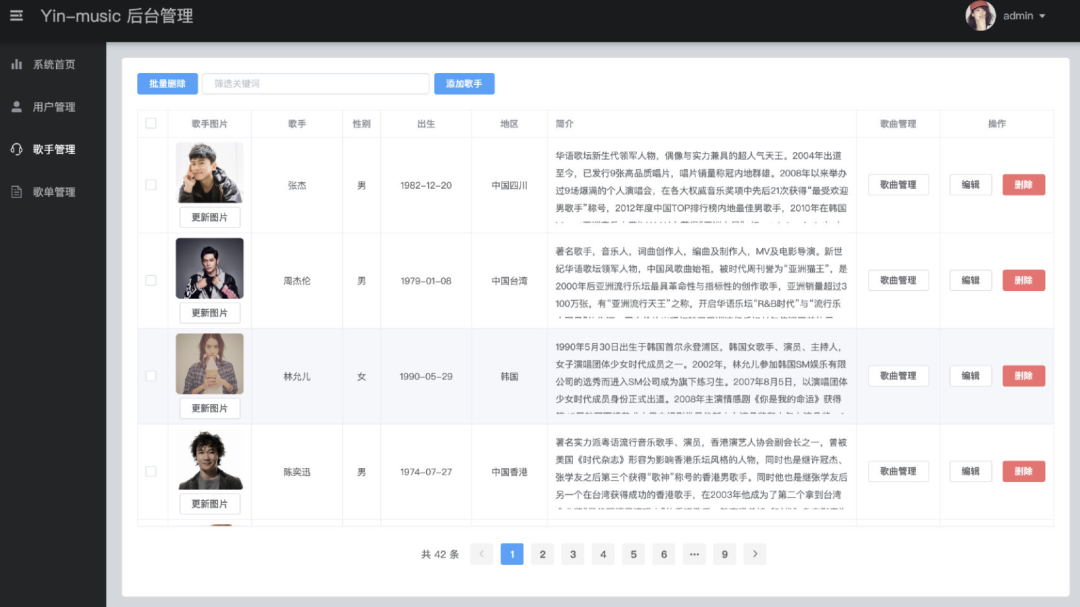 后台:歌手管理
