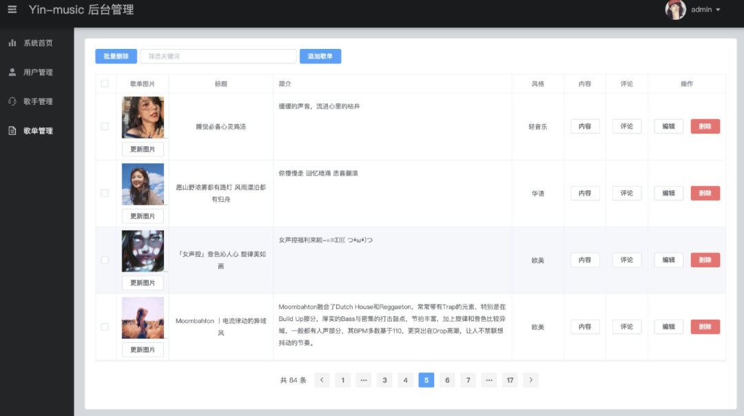 后台:歌单管理