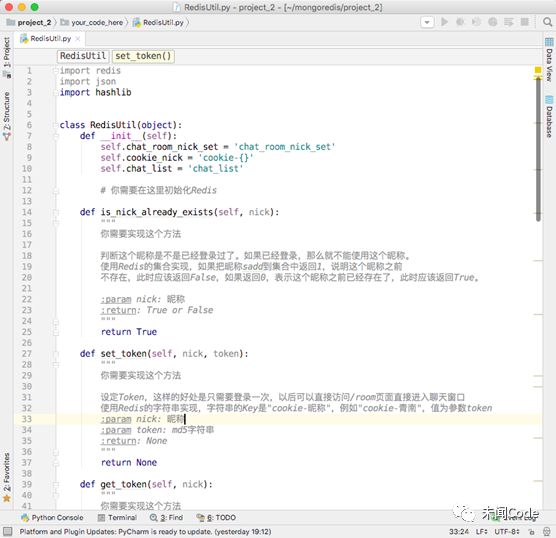 打开your_code_here文件夹下面的RedisUtil.py文件,大家看到的初始代码。