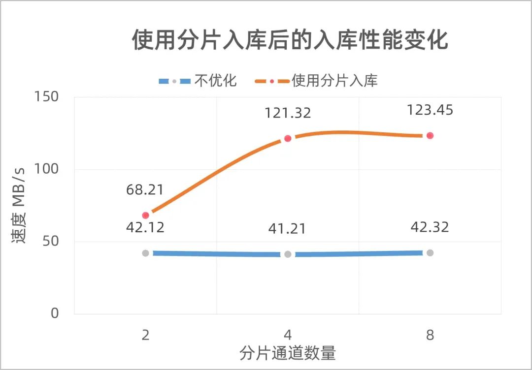 使用同样的KUFL(中间文件),开启“分片并行入库”后,性能变化曲线