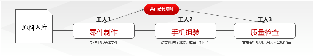 类比手机生产流水线如下图:工人1和工人3 共用一套质检规则,工人3质检淘汰过的产品零件都会被标记,都会记录到质检规则中,后续供工人1使用。在工人1零件制作过程就可以淘汰掉不合格零件,大大减少后续工人的工作量。