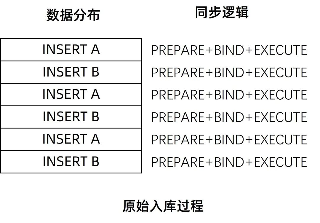 (4)如果下一条入库的操作和上一条的操作类型、操作表一致,则复用之前的PREPARE语句;