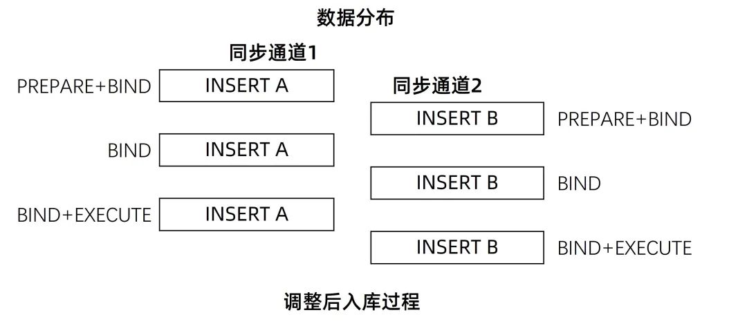 调整后事务被拆分成了两条入库通道,性能为原来的2倍。再加上每个通道都充分使用了数据库的PBE特性,性能又有了进一步的提升。