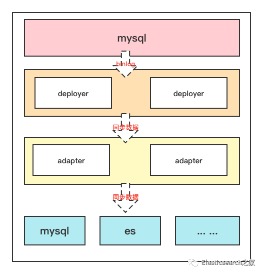 我们知道canal中有服务端deployer和客户端adapter,服务端负责从mysql中读取binlog,而客户端负责从服务端读取同步过来的binlog数据,处理后将同步数据发送到目标服务端,比如redis、es或其他的关系性数据库等