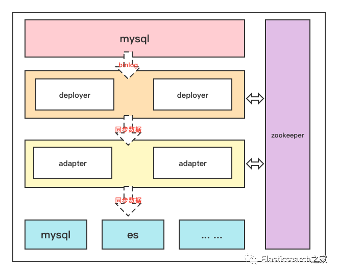 deployer节点同时只会运行一个,而adapter节点是采用服务分发的机制,多节点同时服务,由zk分发请求到具体的adapter节点上执行数据同步任务