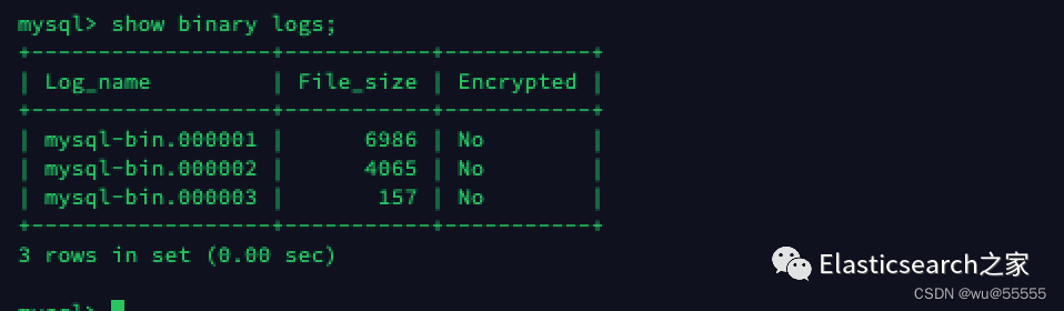 # 源mysql服务器中登陆mysql执行show binary logs;
