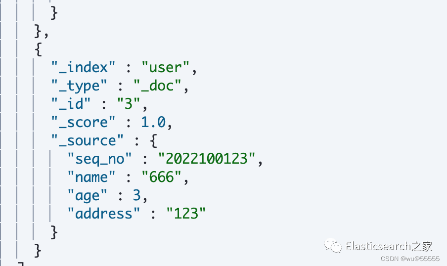{"user" : {"mappings" : {"properties" : {"address" : {"type" : "text","analyzer" : "ik_smart"},"age" : {"type" : "integer"},"name" : {"type" : "keyword"},"seq_no" : {"type" : "keyword"}}}}}