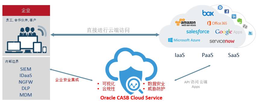 甲骨文 CASB 云服务通过自动化的安全监控保护企业组织的整个云端环境。这是一项开创性的,基于API的云应用访问安全代理(CASB)服务,它简化了安全基线的配置,弥补了安全设置的偏差,通过对用户行为分析来检测异常,覆盖多个不同的云服务厂商进行综合防范安全威胁。甲骨文CASB云服务是业界唯一一个可以在5分钟内完成部署的CASB产品。