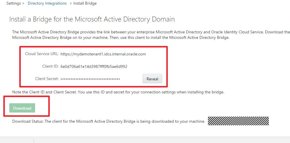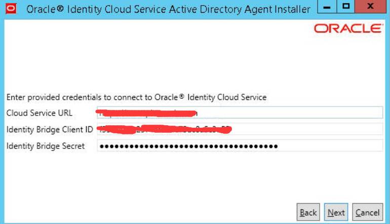 4.安装Microsoft Active Directory Bridge, 输入相应参数IDCS URL/Cilent ID Client Secret。