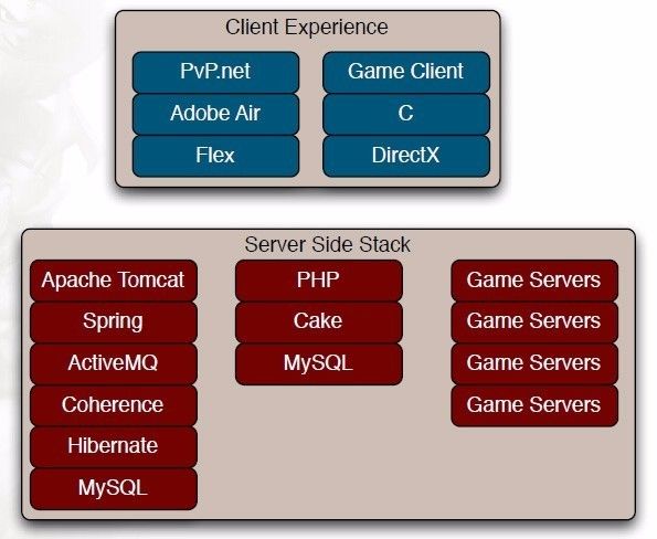 此后,Riot再没有公布游戏的上述具体数据,只是在2016年9月,Riot高层透露LOL月均用户有1亿左右。可见LOL的用户还在不断的增长中,正是因为有非常好的体验,LOL才如此成功。而这一切都依赖于LOL的底层技术架构。让我们了解下LOL的技术架构。
