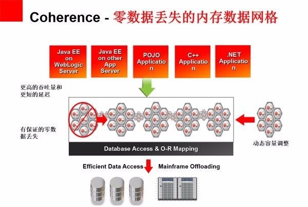 Coherence可以对缓存的数据进行备份,保证有节点出故障或者停机时,数据不丢失。也可以动态加入新的节点。这时候数据会重新分布。这些对应用都是透明的。Coherence支持Java, C++, .Net客户端,支持REST访问。