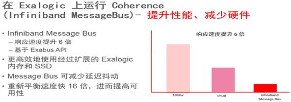 Coherence在Oracle弹性云一体机Exalogic上做了专门的优化,Coherence + Exalogic可以提供超高的性能,如下图: