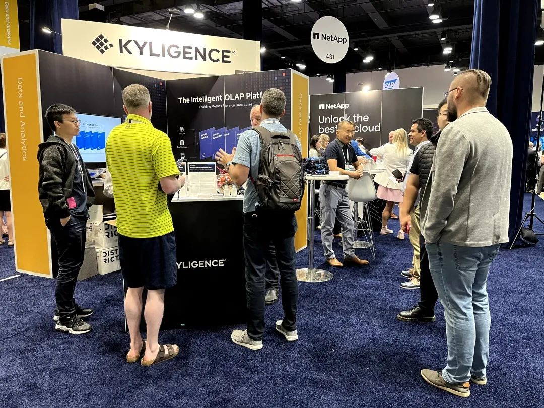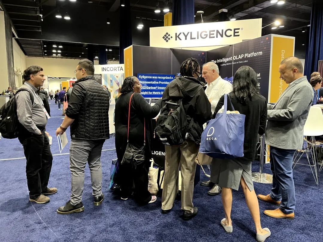 参会观众在 Kyligence 展台驻留,与工作人员详细交谈