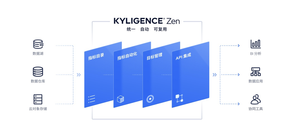 指标中台为业务用户设计,无需考虑底层技术细节,分析师可聚焦在有价值的指标上,人人都可实现自动化、个性化的指标消费,真正释放分析师和工程师的生产力。以金融行业为例,Kyligence 已帮助平安银行管理超过 1.4 万余个指标,拥有 5000 余个活跃用户,显著提升了数据开发效率,对数据进行了有效治理,帮助业务更简单、便捷地进行数据分析和业务洞察,助力平安银行实现了全生命周期的指标自动化构建和管理。