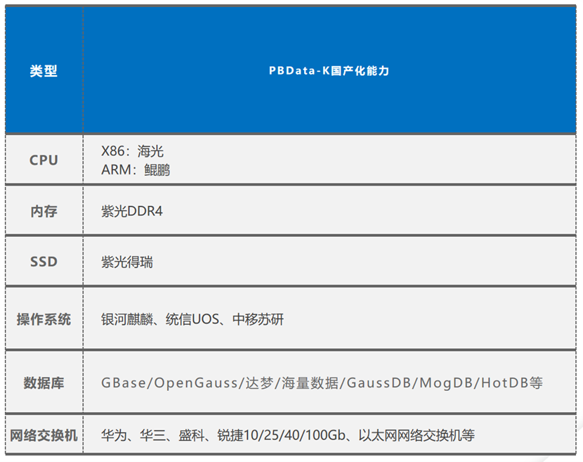从硬件到软件,再到数据库,PBData-K具备国产化软硬一体化交付的能力。 |
