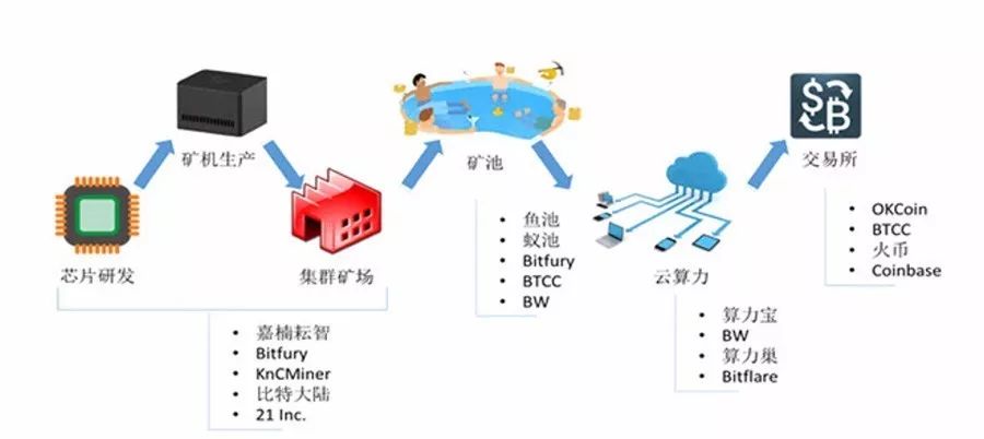矿工越来越多,一个矿工挖到一个块需要很长时间,收入不稳定。于是出现了若干矿池,矿工们把自己的算力加入到矿池中联合挖矿。矿池挖到区块,扣除矿池管理成本后,把收益按贡献的算力比例分配给矿工。围绕专门芯片的研发,矿机的生产,宽池的组织,以及比特币的交易以及形成一个完整的产业链。