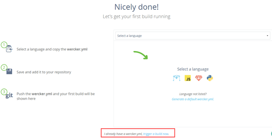 由于 wrecker-springboot已有定义完成的wercker.yaml文件,选择“trigger a build now”