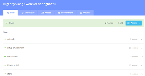 选择wercker-springboot ,选择下一步直至构建Wercker Application 完成。
