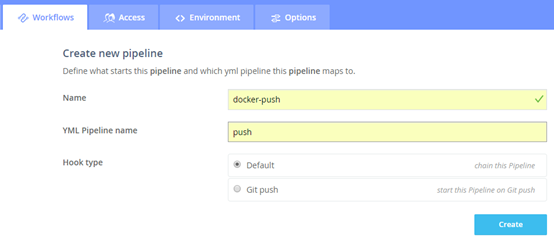 在pipeline编辑过程中,分别填入name、YML pipeline name、hook type,hook type 选择“default”
