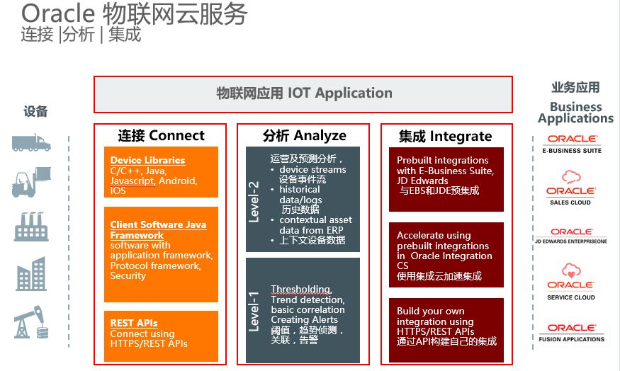 通过这些演讲内容,我们看到,甲骨文物联网方案的特点: