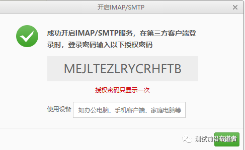 password:登录邮箱的密码,像笔者用的是网易邮箱,网易邮箱一般是网页版,需要用到客户端密码,需要在网页版的网易邮箱中设置授权码,该授权码即为客户端密码。