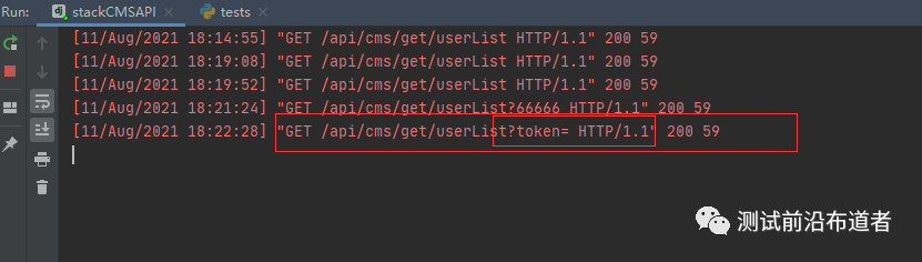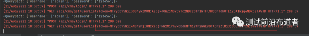 我们已经看到后台终端已经接收到了一个请求参数为token的响应、但没有值我们传递的时候本身就是没有给值所以这是正常的、token需要进行登录我们下面讲解post请求使用在进行登录接口演示