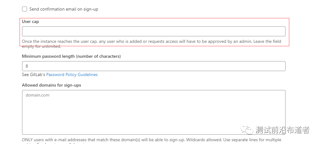 设置用户上限、好像gitlab默认为十个用户根据你自己的公司成员来确定具体的用户数