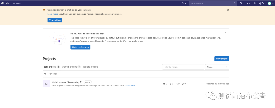 到这gitlab基本已经搭建好了、gitlab的使用需要一定时间的去学习才能很好的使用、gitlab的教程后续再给大家分享我们测试如何使用gitlab的。
