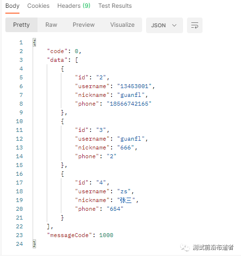 这个时候我们进行去使用之前我们用到的用户查询接口看看结果、现在看来是已经有数据了