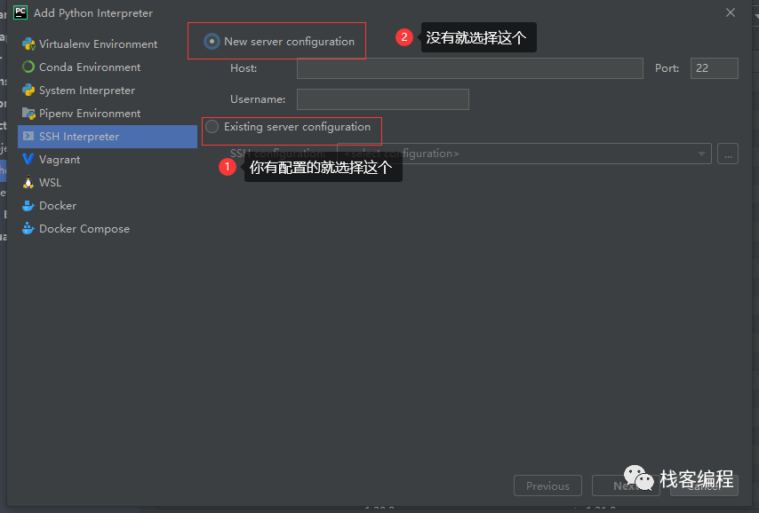 如果你没有任何配置过就选择 New server configuration、有配置就选择 Existing server configuration
