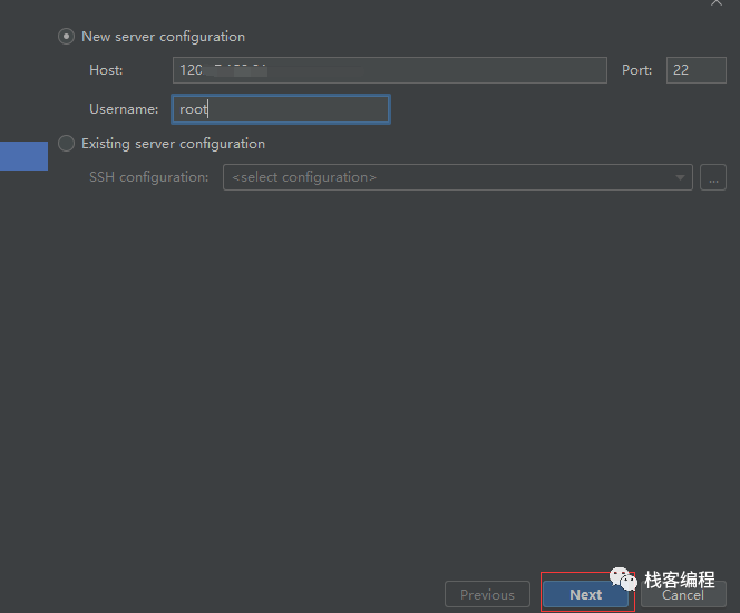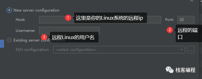 接下来需要填写远程Linux的一些信息、Host是你的Linux的ip地址、Port是你的远程Linux SSH 的端口号