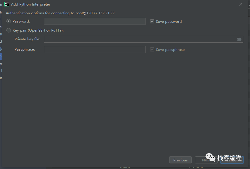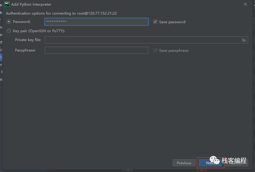 然后就会提示你输入登录密码、方式一种常见的密码登录、一种是密钥进行登录、直接选择密码登录即可