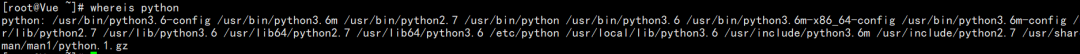 如果不知道忘记了自己安装的Python 路径在哪里可以使用 whereis python进行查看