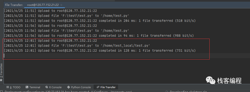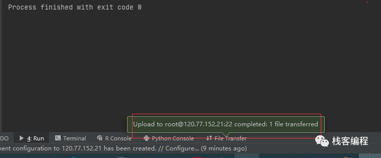 会发现pychram下方有个File Transfer选项卡点击后会看到你的本地文件已经上传成功了