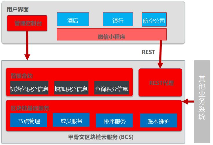 通过甲骨文区块链实现积分系统的具体架构见下图: