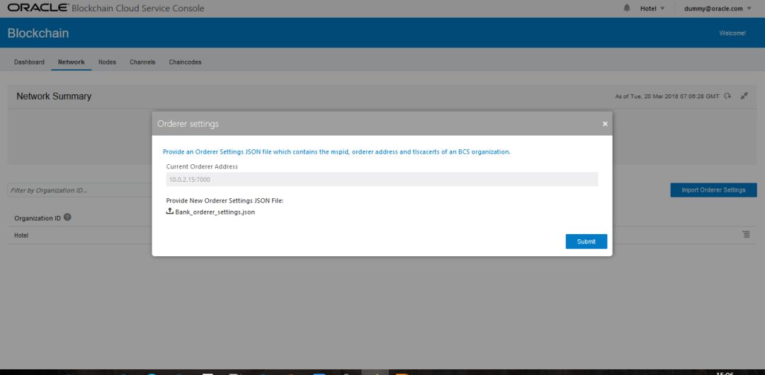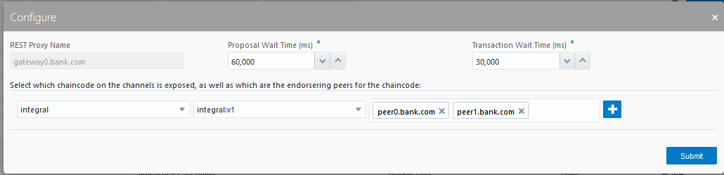 甲骨文区块链云服务提供了方便快捷的Rest Proxy网关服务,方便客户端对智能合约的操作和访问,在安全方面,网关服务通过甲骨文IDCS安全云服务提供身份认证和授权;要通过Rest Proxy开放智能合约的访问,需要在参与者各方导航到“节点”选项卡并定位网关节点(gateway0.dauto.com或类似)。使用上下文菜单单击“编辑”。配置每个通道,链码和Peer节点,然后点击“提交”。甲骨文区块链云服务为每个区块链网络组织提供了独立的网关服务,你需要为每个联盟组织重复这些步骤。