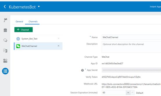 maintenanceDeploymentAction: component: "System.Output" properties: text: "正在请求后台服务,查询可维护部署的信息....... " keepTurn: true maitenceDeploymentListNew: component: "maintenanceDeployment" properties: resourceAction: "${resourceActionTypeSelected.value}" resourceName: "${resourceName.value}" transitions: actions: cancel: "unresolvedIntent" deploymentList: "maitenceDeploymentSelect" maitenceDeploymentSelect: component: "System.List" properties: prompt: "选择需要维护的部署:" autoNumbering: true options: ${cmdOutputString.value} variable: resourceName maxPrompts: 1 transitions: next: "maitenceDeploymentSelectAction" actions: cancel: "unresolvedIntent"2.4 增加微信渠道